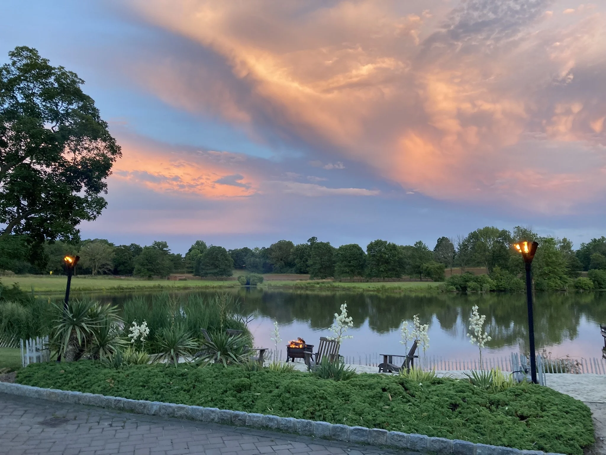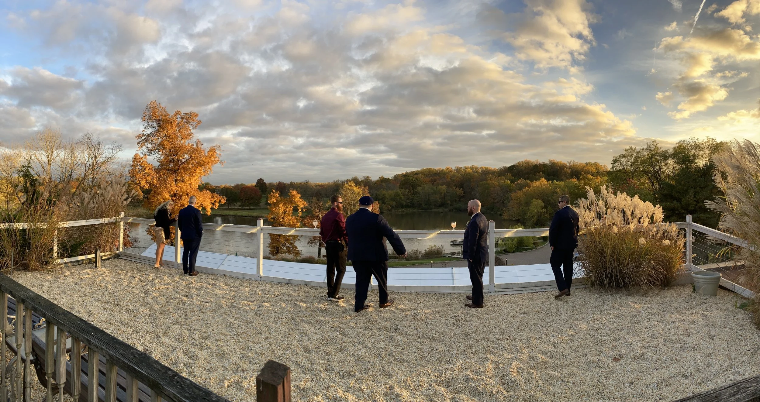 Mid-spring to mid-autumn, guests venture outdoors after dinner to stretch and mill about. When conditions permit, they may venture to the rooftop and enjoy the overlook view of the lake. Sunsets are spectacular from this vantage point. The journey from the front yard to the rooftop overlook in our golf carts, especially on a warm and balmy evening, is an exhilarating experience that is certain to be one of many highlights of the night for your guests.