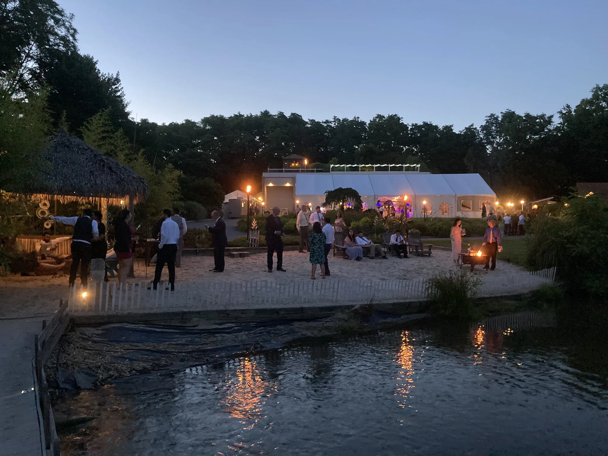 Elegantly appointed climate-controlled reception tent plus 10,000 sq ft of the main house which includes the suites, 9 individual bathrooms, game room, indoor chapel, bar, buffet room, kitchenette, shower